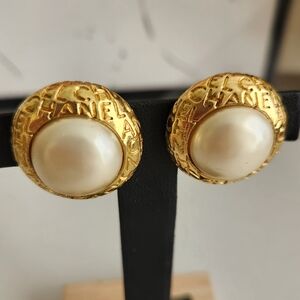 💰💲SOLD💲💰 CHANEL Logo Gold Plated Pearl Clip On Earrings