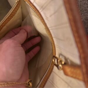 This bag is excellent condition on the outside!! Very little signs of wear. However- I did have a pen or two explode inside which you can see in the photos 🤦🏻♀️. Also- the lining of the side pocket is peeling off- also have a photo of that. Again- from the outside, she’s a beauty! Authentic bag.