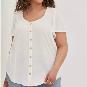 NWT Torrid Rayon Slub Button-Front Flutter Sleeve Top