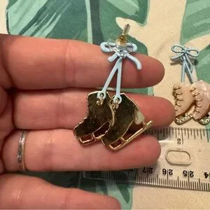 Charming pink ice skate earrings adorned with rhinestones. Perfect for adding a playful touch to any outfit.
