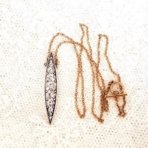 Wanderlust Antique Gold Tone Almond Art Deco Crystal Necklace Toggle Closure