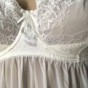 NEW WOMEN'S NIGHTY LINGERIE SIZE 32G 4D BOW DANGLE ACCENT FRILLY IVORY WHITE