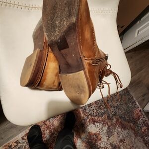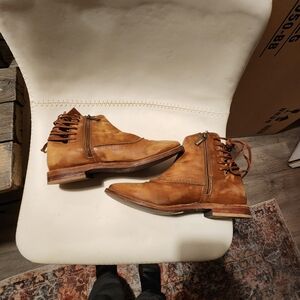 Stylish and durable womens tan leather boots, perfect for any occasion. zip up side,tie in back very destress very cool.