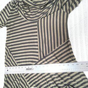Joan Vass Women's Medium Long Sleeve Cowl Neck Top Black Stripes Asymmetric Hem