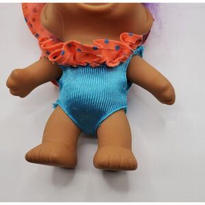 Vintage TNT Troll Doll Purple Hair With Swimsuit & Hat Green Eyes 6" 1991