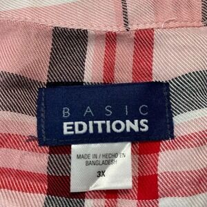 Up For Sale is an BASIC EDITIONS Shirt Womens 3X Button Up Blouse Top Plaid Long Sleeve Pink