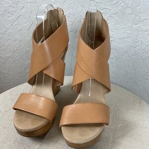 Women’s Diane Von Furstenberg Sunny Leather Wedge Sandal Natural Neutral Sz 7.5