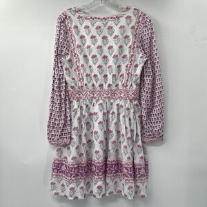 Haute Hippie Women's Small White Pink Boho Floral Long Sleeve Mini Dress NEW