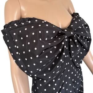 Bardot Polka Dot Bow Off The Shoulder Mini Party Club Pinup Dress XS Black White