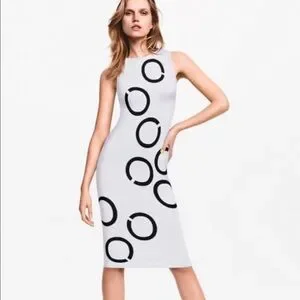 Ring in the new trend: This slim-fitting dress boasts a striking ring design in contrasting colors thanks to the two-tone knitting technique. This absolute eye-catcher is sleeveless and boasts a boat neckline.