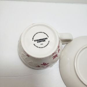 Starbucks 2006 Embossed Leaf Mug Cup and Saucer Pink Cream 9 oz