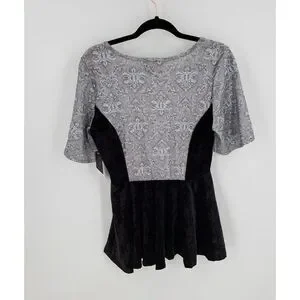 LuLaRoe Elegant Womens Emma Peplum Top Bell Sleeve Black Silver Sparkle Size S