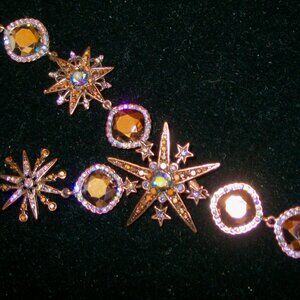 PRICE REDUCED 12/16/25 LOWER PRICE FOR HOLIDAY GIFT GIVING..."KIRKS FOLLY STUNNING STARDUST MEMORIES NECKLACE-CONVERTIBLE-NEW AND GORGEOUS!" This wonderful sparkling "Stardust" memories necklace is interchangeable! You can remove the last 3 stones from the necklace with a lobster clasp that fits on the back of the big star. Or wear it with the extra length. That amounts to an extra 3". The necklace is convertible with the "slide" clasp making it adjustable for any length you choose. It is signed on the reverse on one of the backs of the removable section. This finish is in a gold rose-tone finish and it really brings all the sparkle you could ask for! This wonderful necklace will be shipped in a FREE gift box the business day after sale. Any questions, please feel free to ask. THIS IS THE FINAL TIME WE CAN REDUCE THE PRICE SO SAVE NOW!