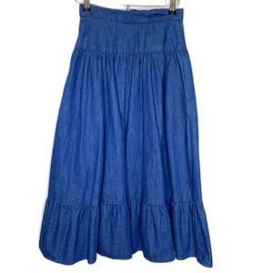 VTG Womens Denim Tiered Prairie Skirt Corset Yoke Western Cowgirl Cottagecore