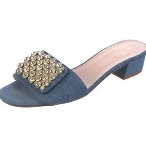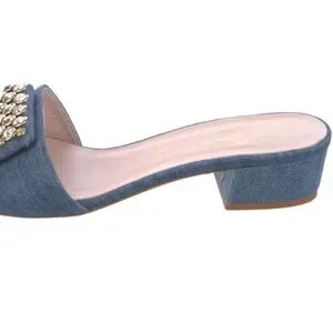Kate Spade New York Mazie Denim Italian Leather Slide Sandals Womens Sz 6.5 NEW