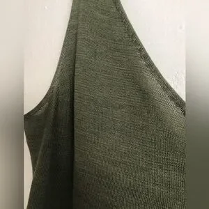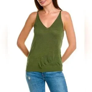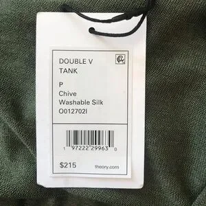 Silk washable V neck tank top in chive with ribbed hem.