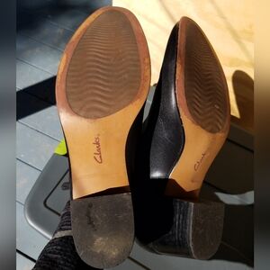 Clarks Artisan Maypearl Alice black leather ankle booties, they have some wear on toes and soles, leather is in excellent condition.