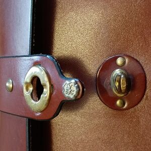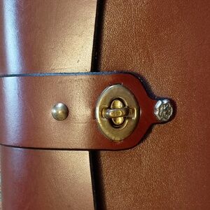 Very preppy vintage 60s 70s John Romain saddle leather shoulder bag with brass hardwear and adjustable strap. Pristine interior, slight exterior scuffing, likely from storage.