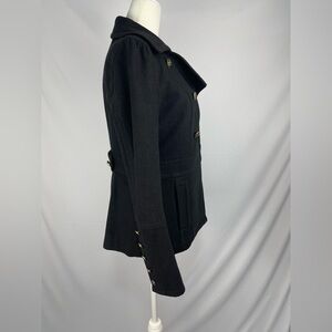 Guess Jeans wool blend black pea coat. Plaid cotton lining with Two side pockets and beautiful buttons on cuffs.