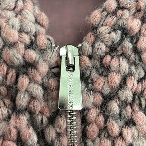 Stylish pink textured jacket with a cozy design. Features a zippered pocket for convenience.
