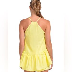 DETAILS: beautiful bright yellow silk top by luxury brand Cinq à Sept featuring racerback adjustable straps, v-neck and soft peplum bottom.