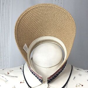 🇺🇸 Like New Twig and Arrow Stylish sun visor with red white and blue stars and stripes pattern. Features a woven tan brim and stretchy soft grip head band Perfect for sunny days and active golf and outdoor activities.
