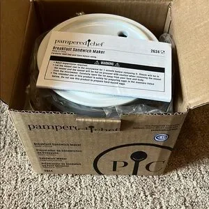 Brand new!! Pampered Chef breakfast sandwich maker in white. Perfect for quick and easy meals.