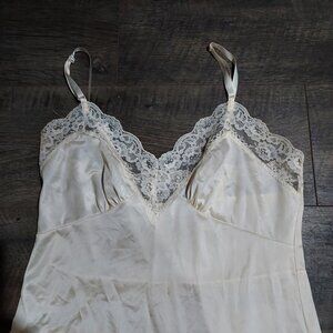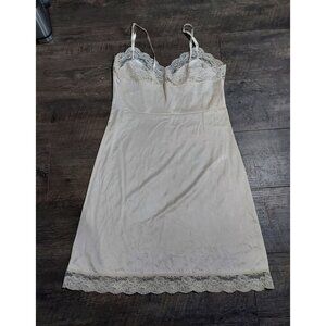 Vintage Vanity Fair Women Size 36 L Beige Nylon Full Slip Dress Rose Lace USA