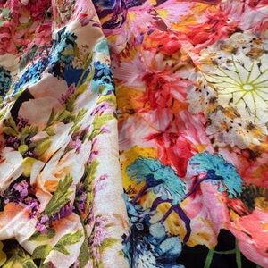 Anthropologie Maxi Dress by Ranna Gill Arnala Mixed Polka Dot and Floral Print with a jeweled neck collar. Lots of patterns and textures on this stunning gown. Lace inset vents on sides. Black and white background with tiny polkadots create a beautiful pattern mixture with stunning bouquets of flowers in every color of the rainbow. Primary colors that stand out are pink, red, purple and beautiful, bright turquoise blue. In excellent use condition, no missing rhinestones. Back zip.