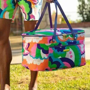 The Floral Cloud Picnic Tote is chic and eye-catching for your next outdoor adventure with a colorful floral print, two top handles and a top zipper closure. Blending timeless style with a playful color palette, this soft, insulated cooler tote bag is a must-have for warm-weather outings.