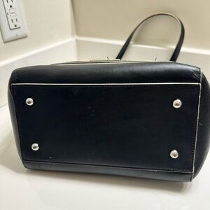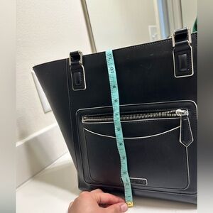 Elegant black leather tote bag with a sleek design. Perfect for everyday use.