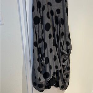 Stylish black and white polka dot dress perfect for any occasion. Features a flattering silhouette and eye-catching design. Higher waistline that balloons out. Small size. Patrizia Luca design.