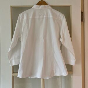 Vintage white L. L. Bean button-up shirt with 3/4 sleeves, wrinkle resist
