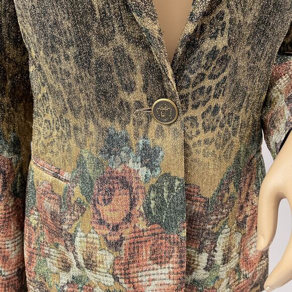 OO LA LA Boutique Blazer Women 4 Metallic Glitter Leopard Animal Floral Office