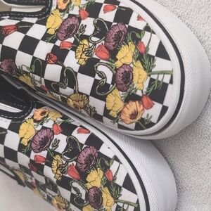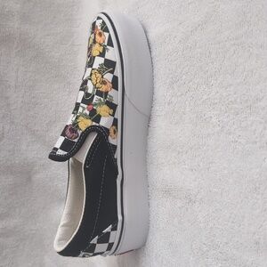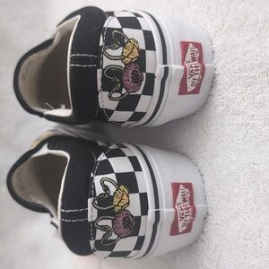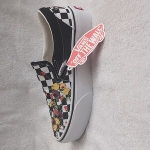 Vans classic slip-ons with beautiful floral embroidery and traditional checkerboard pattern. Never worn