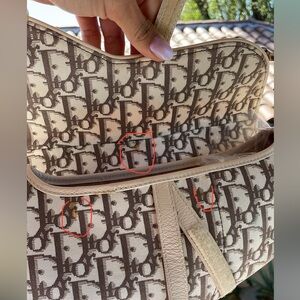 Christian Dior beige floral saddle bag in excellent condition with some Moderate discoloration minor marking as shown in pictures clean inside and out the hardware remain bright and shiny 100% authentic