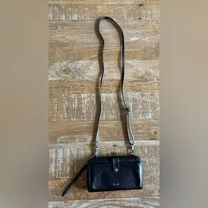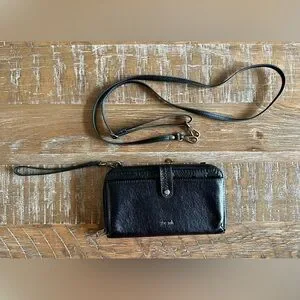 NEW The Sak Black Leather Crossbody/Wristlet Purse with Detachable Straps