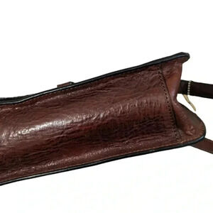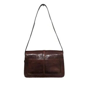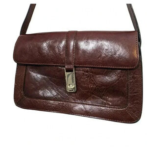 Vintage Fossil Brown Genuine Leather Flap Shoulder Bag Y2K 90s Key Charm