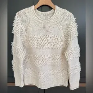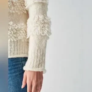 FAHERTY Polly • M • Winter White Mock Neck Looped Soft Knit Sweater