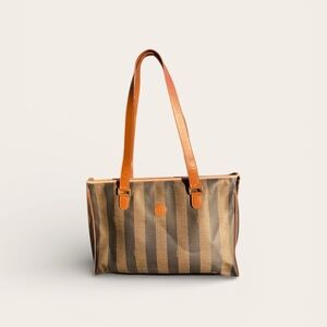Authentic Fendi Pequin large striped shoulder bag tote. This stylish tote bag features a classic striped design in rich brown tones. Perfect for any occasion, it combines elegance with functionality. Would make a great small overnight bag!