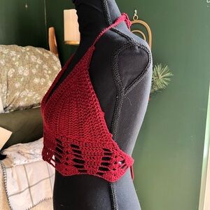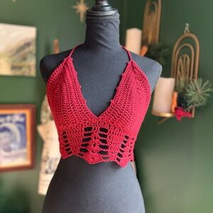 💫 Handmade red crochet halter top