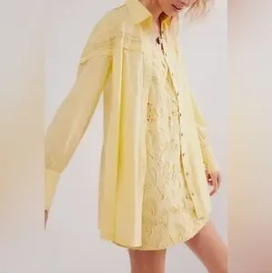 Elevate your fashion game with this stunning Free People two piece co-ord set. The yellow floral pattern adds a touch of playfulness to the dress, while the button down long sleeve, and straight neckline offer a classic and sophisticated look. The dress and shirt are made of 100% cotton, making it lightweight and breathable. The adjustable straps and button accents add a touch of convenience and elegence to this A- line mini dress. Perfect for any occasion, this dress will make you stand out in a crowd.
