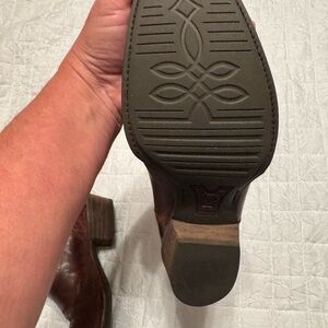 Stylish brown leather western boots. Perfect for a rustic look. Only worn once. These boots are made to look rustic and worn.
