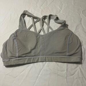 Experience comfort and style with the lululemon athletica Gray Strappy Sports Bra. Perfect for workouts or casual wear, this bra offers support with a chic design. Please see all photos