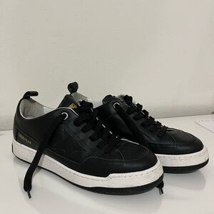 These black calfskin leather low top sneakers are in excellent condition! Hardly worn!