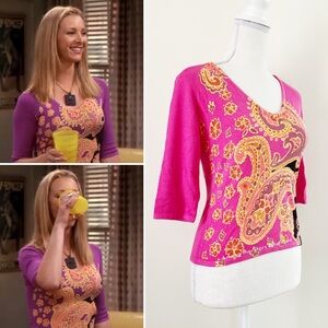 Rare Vintage Y2K Pink Paisley + Floral Top Alt. ASO Phoebe Buffay in Friends