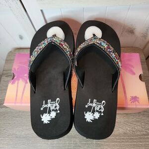 PRICE IS FIRM. NWT Jellypop Savea flip flop sandals. Brand new; never worn. Size 8. These sparkling and fun sandals add a touch of pizzazz to your