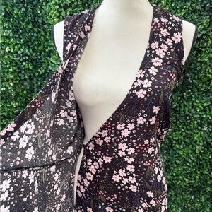 LOFT Outlet Black/Pink Floral Sleeveless Wrap Dress