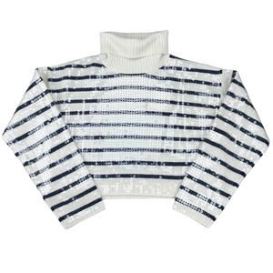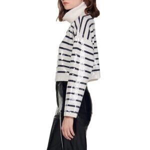 NWT SANDRO Ariel Sequin Striped Turtleneck Sweater Sz XS