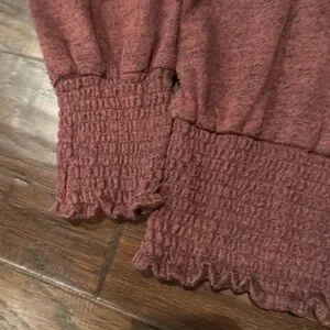 Cozy red long sleeve sweater with a textured design. Perfect for casual wear.